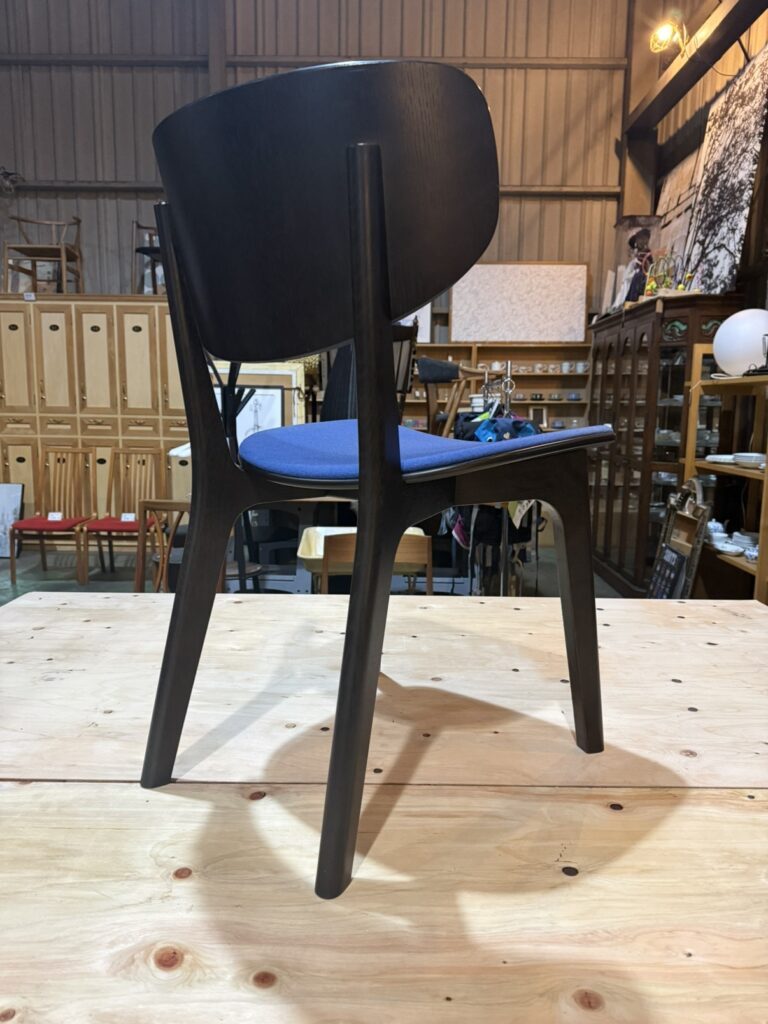 やわらかい丸みのあるデザインの椅子とテーブルです。アウトラインの縁はやさしく丸められ、硬さがまるでありません。丸っこい大きな背板と背中を包み込むその心地良さが魅力です。まっすぐに座っても斜めに座っても身体がすっぽりと収まる背板なので、長い時間座っていても疲れません。椅子は後ろ姿に価値があるといわれていますが、このRoundish は後ろから見た姿が特に美しい椅子です。