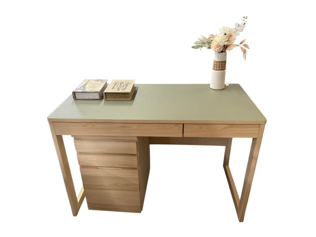 私がこのLEGNATECの木製デスクをおすすめする一番の理由は、見た瞬間に「これだ」と感じるほどのデザインの良さにあります。ナチュラルな木の風合いに、やさしいグリーンの天板がほどよくアクセントになっていて、シンプルなのにしっかりと個性も感じられる。家具として主張しすぎないのに、部屋の雰囲気を一気に引き上げてくれる存在感があります。