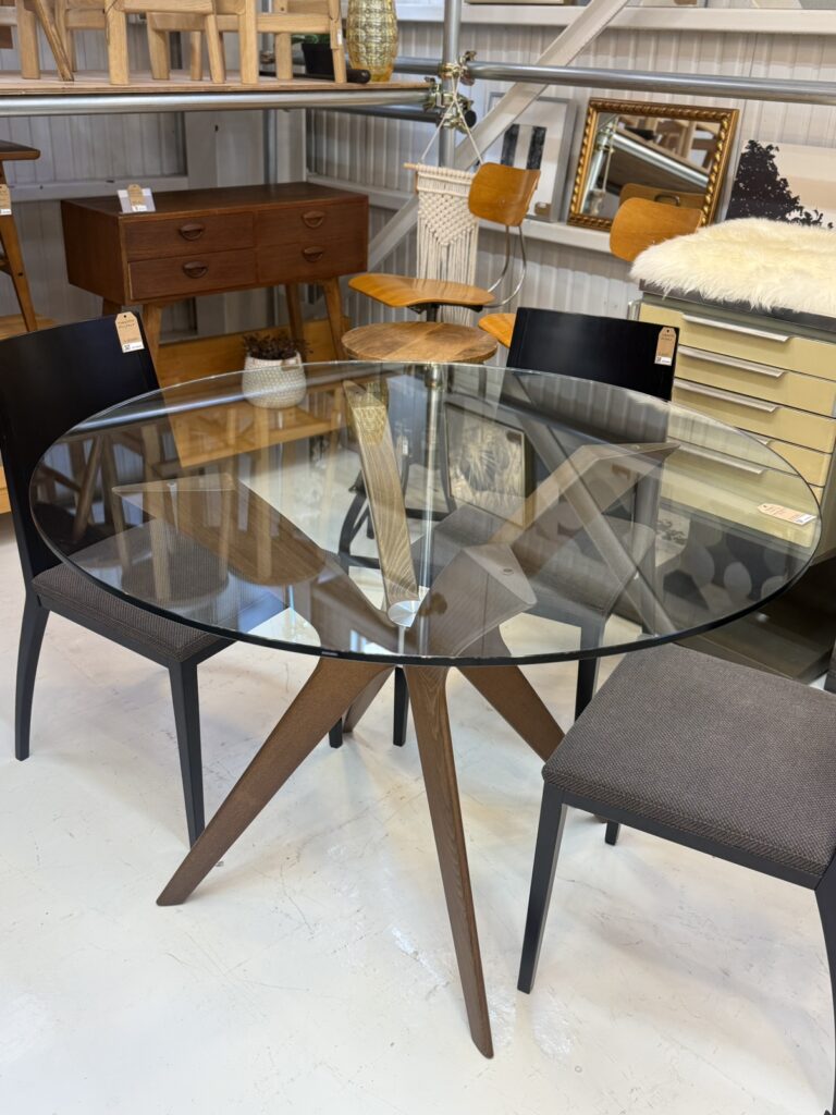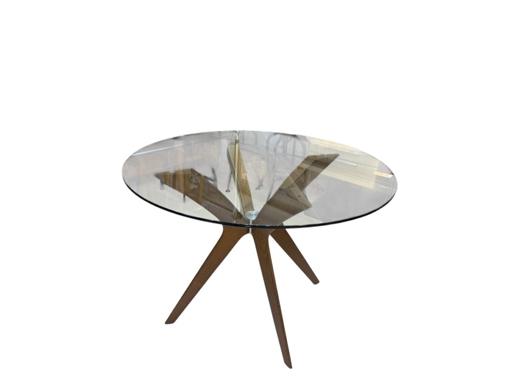 私がおすすめする「トーキョーテーブル(TOKYO TABLE)」は、カリガリスの中でも特に人気の高いモデルのひとつ。最大の特徴は、ガラスの天板と美しいクロス脚のデザインにあります。