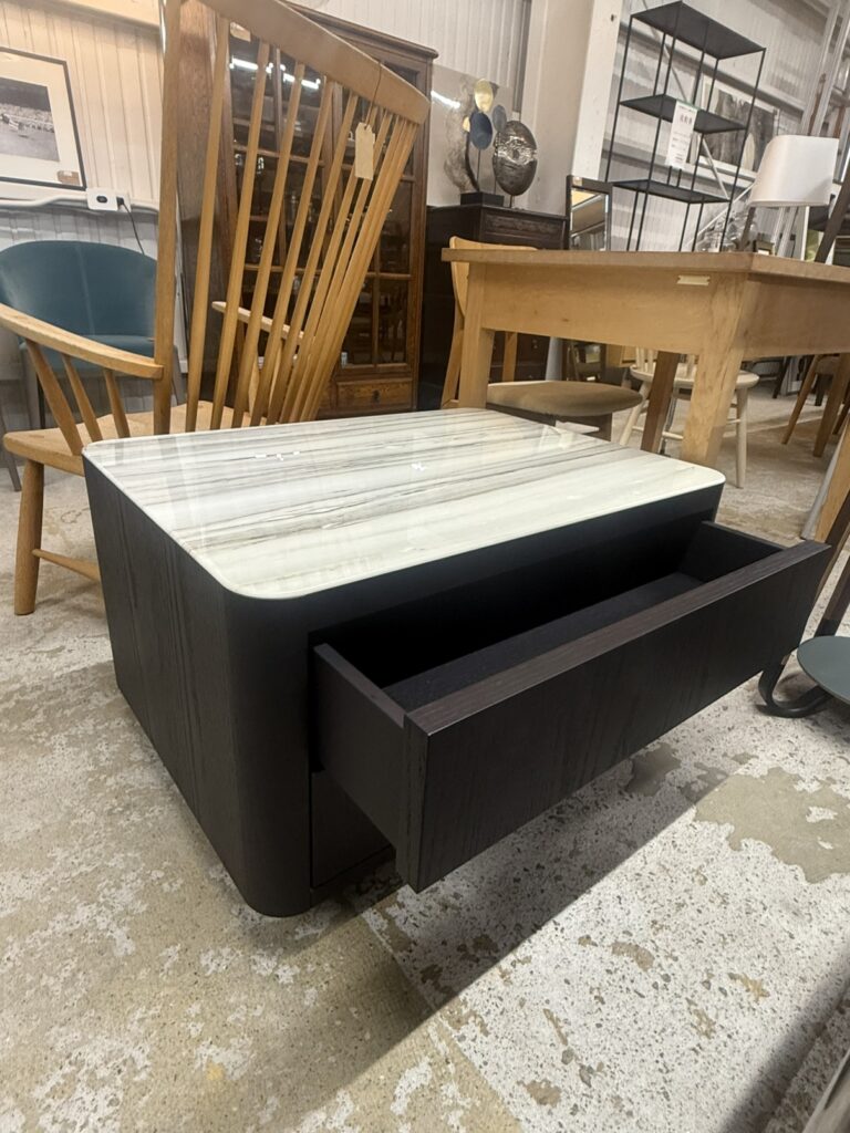 大理石の天板が持つ上質な存在感と、引き出しに隠された収納力。