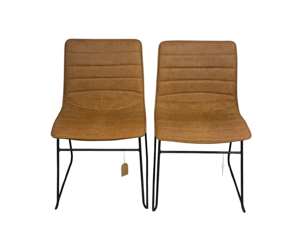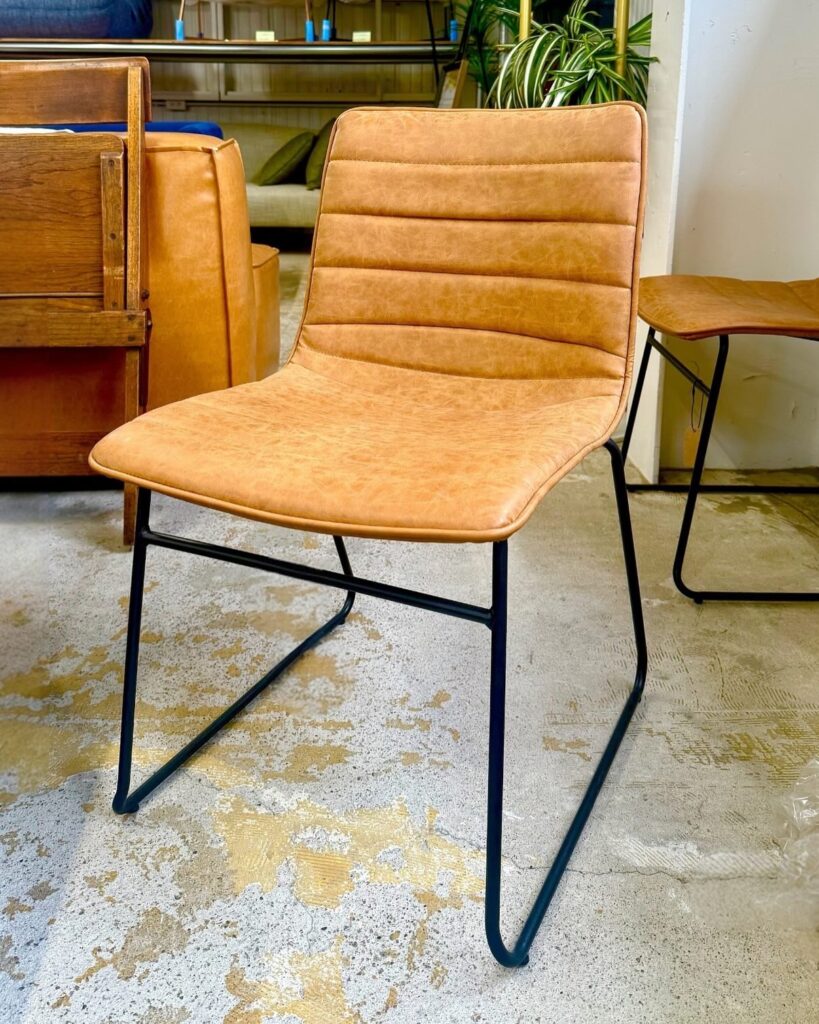 さらに、細身のブラックスチール脚がキャメルカラーの座面を引き締めてくれることで、