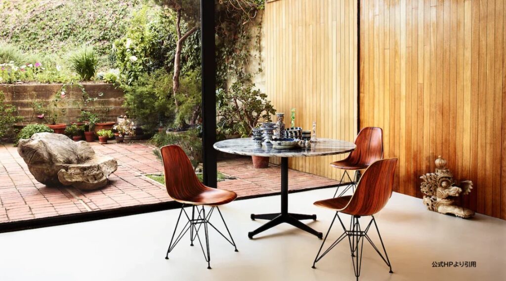 イームズ夫妻は家具だけでなく建築分野にも革新をもたらしました。1940年代には小型住宅や展示空間の設計に関わり、モジュール化やプレハブ建築の可能性を追求しました。家具デザインの知見を建築に応用することで、空間全体の機能性と快適性を最適化。素材の特性や構造を理解した上で、家具と建築を統合的にデザインする姿勢は、今日のインテリアデザインやプロダクトデザインの教育でも高く評価されています。彼らの建築作品は、家具と住空間の一体感を体現する好例です。